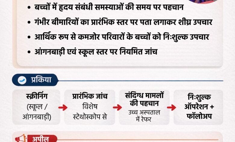 प्रोजेक्ट धड़कन : 80 संस्थानों में 1488 बच्चों की हृदय जांच, एक संदिग्ध बच्चा रेफर