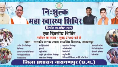 - आज नारायणपुर में लगेगा निःशुल्क महा स्वास्थ्य शिविर, अबूझमाड़ तक पहुंचेगी विशेषज्ञ सेवाएं