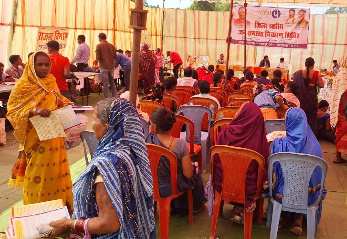 नारायणपुर, 22 नवम्बर 2024 – जिले के सम्माननीय नागरिकों के शिक्षा, स्वास्थ्य, कल्याण और समग्र विकास हेतु प्रशासन निरंतर कार्यरत है। राज्य शासन के निर्देशों के तहत लोक शिकायतों के त्वरित निराकरण, विकास कार्यों की स्वीकृति और जनकल्याणकारी योजनाओं का लाभ जनसाधारण तक पहुंचाने के उद्देश्य से जिले के ग्राम पंचायतों और हाट बाजारों में शिविर आयोजित किए जा रहे हैं। इन शिविरों में संबंधित विभागों के अधिकारी उपस्थित रहते हैं और आवेदनों का समाधान करते हैं।