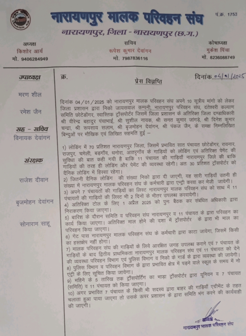 नारायणपुर, 17 दिसम्बर 2024: जिला कार्यालय के सभाकक्ष में कलेक्टर बिपिन मांझी की अध्यक्षता में साप्ताहिक समय सीमा बैठक का आयोजन किया गया। इस बैठक में कलेक्टर ने नियद नेल्लानार योजनांतर्गत स्वीकृत कार्यों की प्रगति की समीक्षा की और अधिकारियों को निर्देश दिए कि इन कार्यों को समय सीमा के भीतर पूर्ण किया जाए।