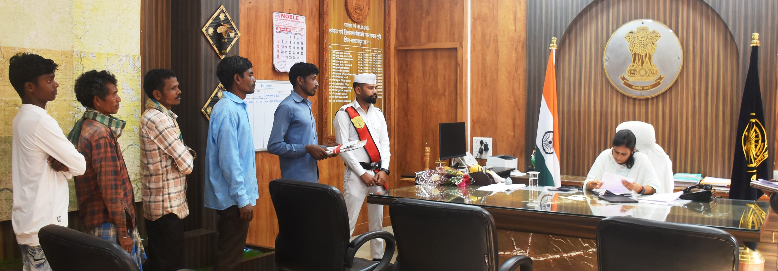 नारायणपुर, 06 जनवरी 2025: कलेक्टर प्रतिष्ठा ममगाईं ने आज जिला कार्यालय के सभा कक्ष में आयोजित साप्ताहिक जनदर्शन कार्यक्रम में जिले के विभिन्न गांवों से पहुंचे लोगों से मुलाकात की। इस अवसर पर उन्होंने ग्रामीणों की समस्याओं और शिकायतों को गंभीरता से सुना और त्वरित निराकरण के लिए संबंधित विभागों के अधिकारियों को निर्देश दिए।