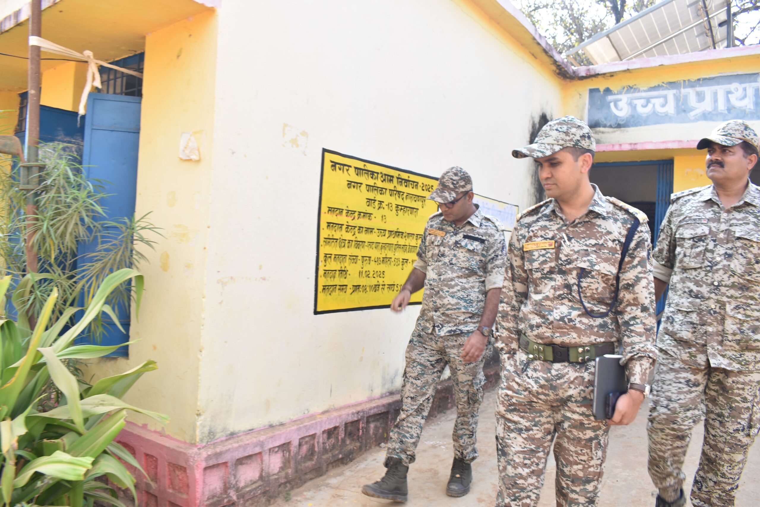 नारायणपुर, 10 फरवरी 2025: 11 फरवरी को होने वाले नगर पालिका परिषद नारायणपुर के अध्यक्ष और 15 वार्डों के पार्षद चुनाव की सुरक्षा व्यवस्था का जायजा लेने के लिए पुलिस अधीक्षक श्री प्रभात कुमार (भा.पु.से.) ने अन्य अधिकारियों के साथ शहर के विभिन्न मतदान केंद्रों का दौरा किया। इस दौरान उन्होंने सुरक्षा बलों को निष्पक्ष, निर्विघ्न, पारदर्शी और शांतिपूर्ण चुनाव सुनिश्चित करने के लिए आवश्यक निर्देश दिए।