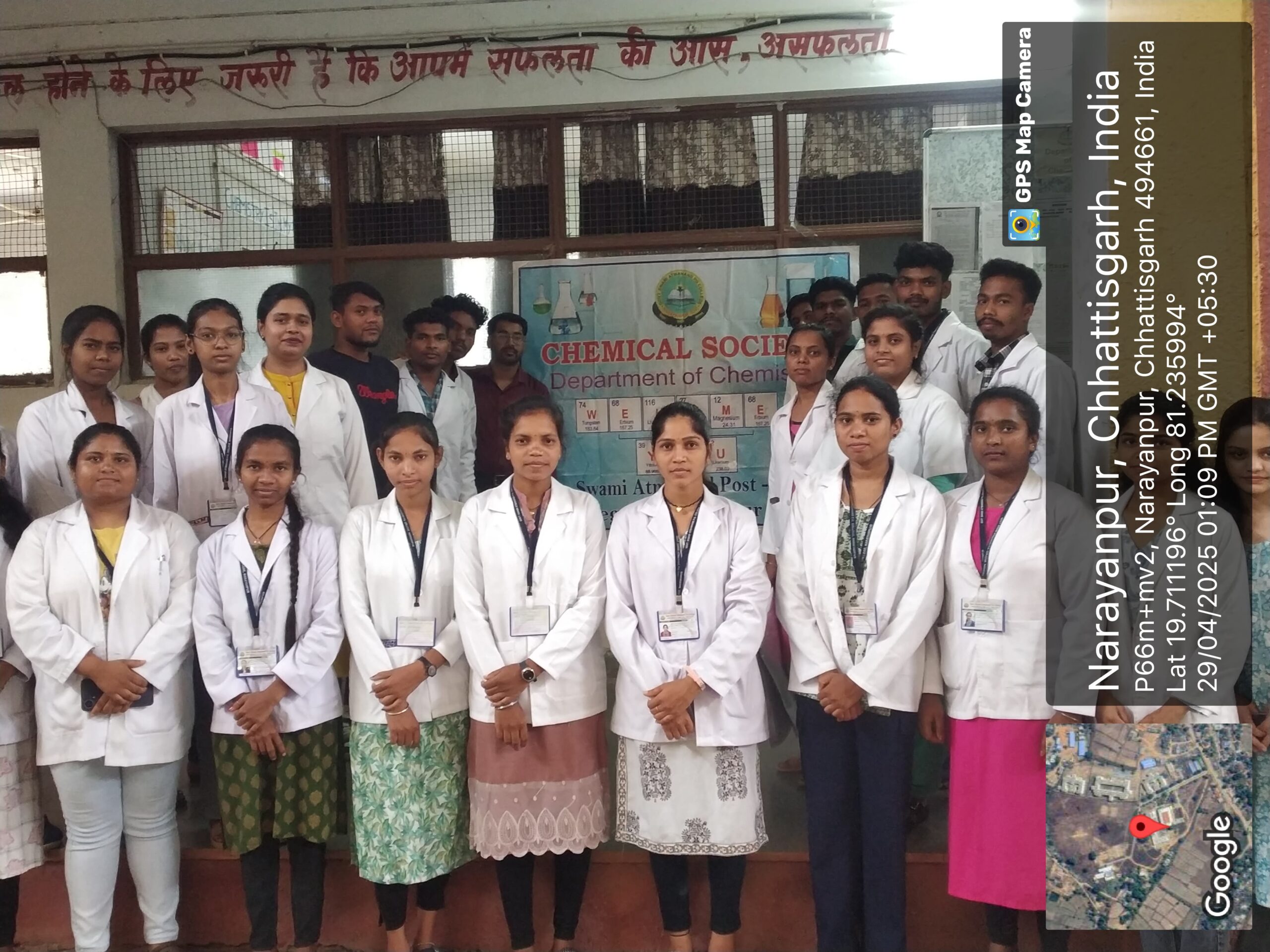 नारायणपुर, 29 अप्रैल 2025 — शासकीय स्वामी आत्मानंद स्नातकोत्तर महाविद्यालय के रसायनशास्त्र विभाग द्वारा केमिकल सोसाइटी के अंतर्गत “ग्रीन केमेस्ट्री” विषय पर एक दिवसीय जागरूकता कार्यक्रम का आयोजन किया गया। इस कार्यक्रम का उद्देश्य विद्यार्थियों को रसायनों के विवेकपूर्ण उपयोग एवं उनके पर्यावरणीय प्रभावों के प्रति जागरूक करना था।