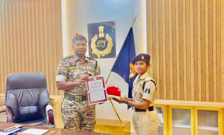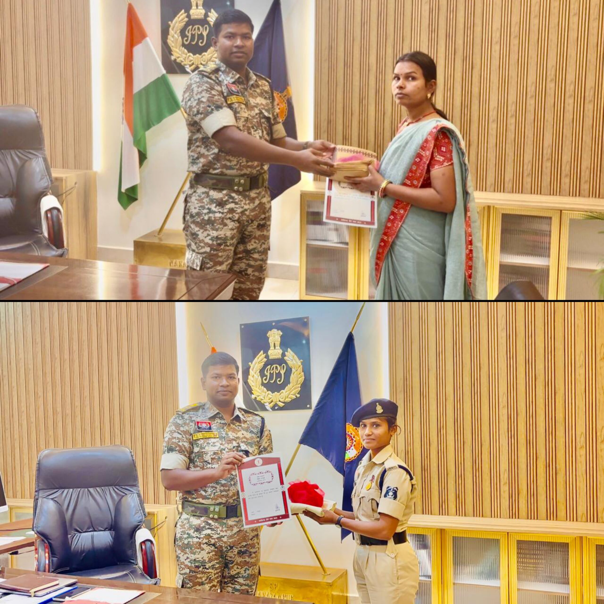 छत्तीसगढ़ शौर्य पदक–2025 प्राप्त बस्तर फाइटर आरक्षक निशा कचलाम और शहीद वीरेंद्र शोरी के परिजनों का सम्मान