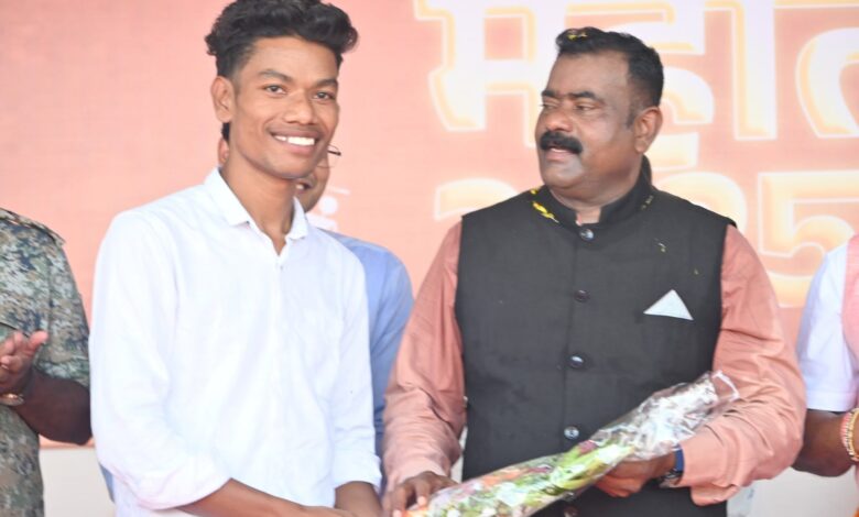 मंच पर बस्तर की संस्कृति की झलक दिखाते हुए जब सुशील मरकाम को सम्मानित किया गया, तो पूरा परिसर गर्व और उमंग से भर उठा।