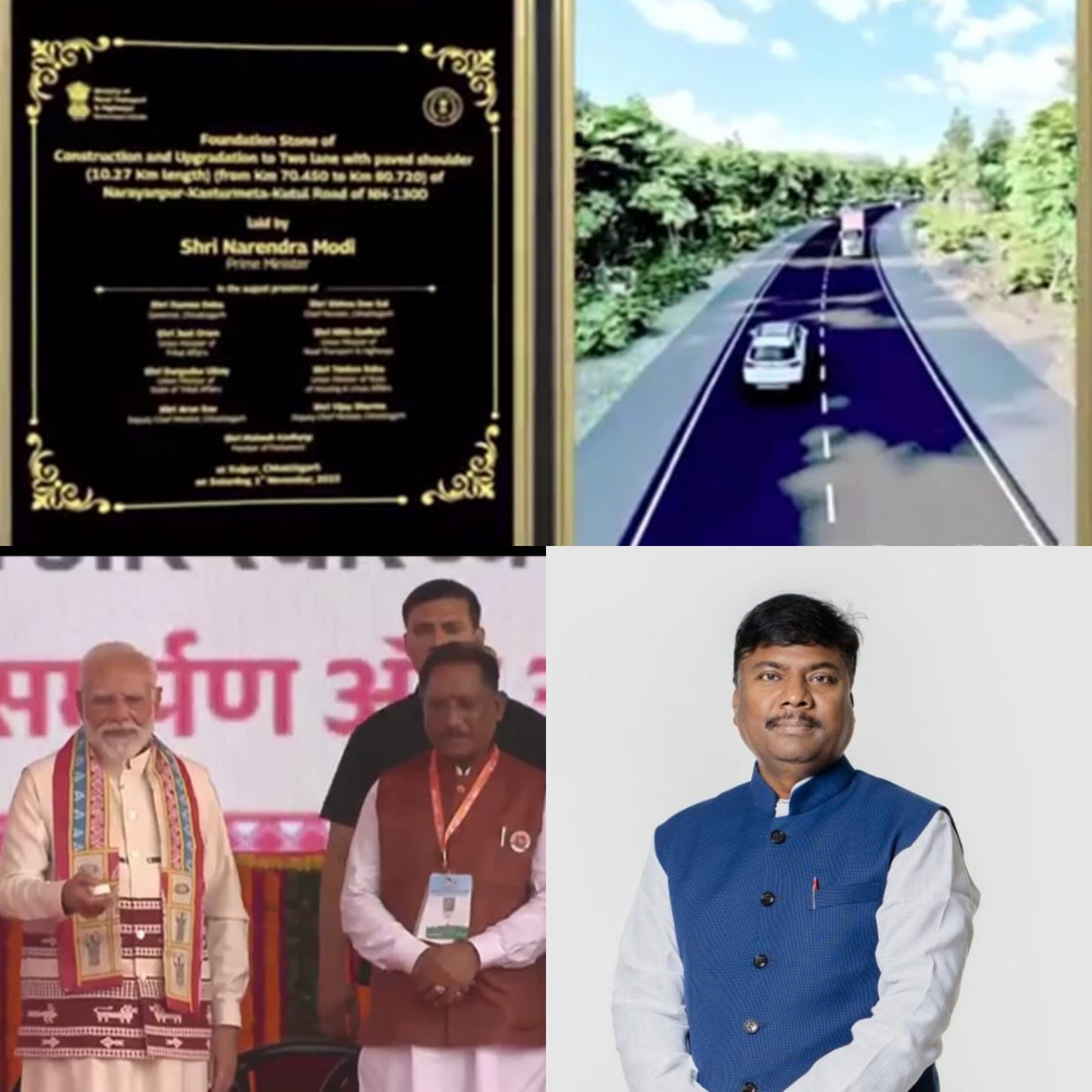 प्रधानमंत्री मोदी ने इस अवसर पर राष्ट्रीय राजमार्ग NH-130D से जुड़ी दो महत्वपूर्ण सड़क परियोजनाओं का शिलान्यास किया। पहली परियोजना नारायणपुर–कस्तुरमेटा–कुतुल मार्ग पर पेव्ड शोल्डर सहित दो लेन सड़क निर्माण एवं उन्नयन की है, जबकि दूसरी परियोजना कुतुल–नेलांगुर से महाराष्ट्र सीमा तक NH-130D मार्ग पर पेव्ड शोल्डर सहित दो लेन निर्माण एवं उन्नयन से संबंधित है।