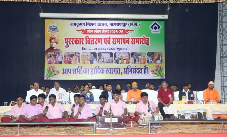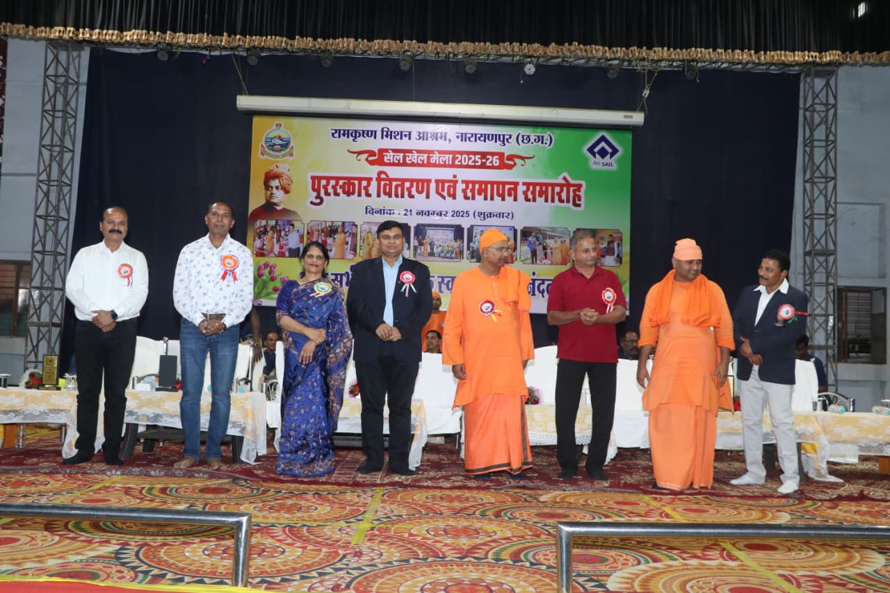 रामकृष्ण मिशन आश्रम, नारायणपुर एवं भिलाई इस्पात संयंत्र के संयुक्त तत्वावधान में आयोजित 19वाँ सेल खेल मेला 2025–26 का आज भव्य समापन हुआ। 18 नवंबर से 21 नवंबर तक चले इस चार दिवसीय खेल महोत्सव में विभिन्न विद्यालयों एवं संस्थानों के प्रतिभागियों ने अनेक खेल प्रतियोगिताओं में हिस्सा लेकर अपनी प्रतिभा का शानदार प्रदर्शन किया।