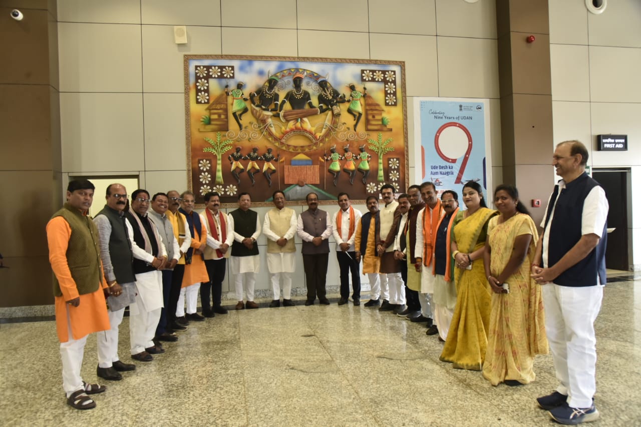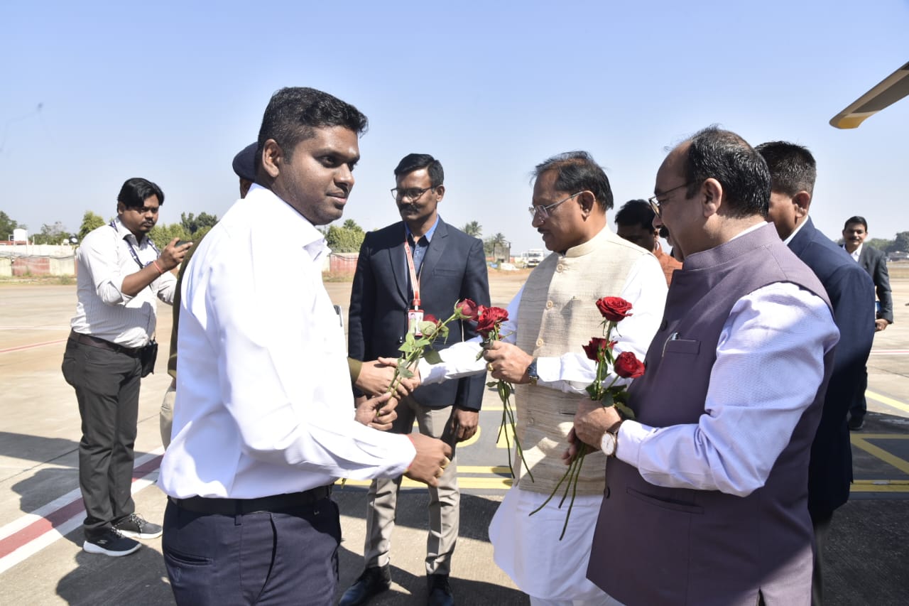 मुख्यमंत्री श्री विष्णु देव साय का जगदलपुर एयरपोर्ट में किया गया आत्मीय स्वागत