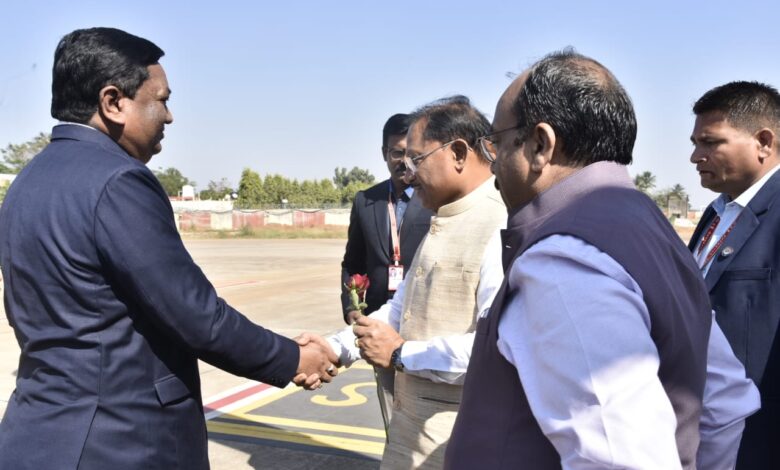 जगदलपुर, 11 दिसंबर 2025/ मुख्यमंत्री श्री विष्णु देव साय अपने एक दिवसीय बस्तर प्रवास पर गुरुवार को हेलीकॉप्टर से जगदलपुर पहुँचे। जगदलपुर में स्थित मां दंतेश्वरी हवाई अड्डे पर मुख्यमंत्री के साथ उप मुख्यमंत्री श्री अरुण साव और श्री विजय शर्मा भी पहुँचे। एयरपोर्ट पर बस्तर सांसद श्री महेश कश्यप,विधायक चित्रकोट श्री विनायक गोयल, महापौर श्री संजय पांडेय सहित अन्य जनप्रतिनिधि और वरिष्ठ अधिकारियों ने मुख्यमंत्री श्री साय का आत्मीय स्वागत किया गया। जगदलपुर स्थित इंदिरा प्रियदर्शनी स्टेडियम में आयोजित बस्तर ओलंपिक 2025 के संभाग स्तरीय प्रतियोगिता कार्यक्रम में मुख्य अतिथि के रूप मुख्यमंत्री श्री साय और विशिष्ट अतिथि के रूप में उप मुख्यमंत्री श्री अरुण साव और श्री विजय शर्मा होंगे।