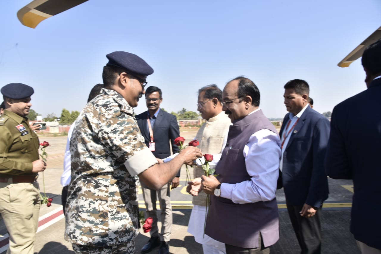 जगदलपुर, 11 दिसंबर 2025/ मुख्यमंत्री श्री विष्णु देव साय अपने एक दिवसीय बस्तर प्रवास पर गुरुवार को हेलीकॉप्टर से जगदलपुर पहुँचे। जगदलपुर में स्थित मां दंतेश्वरी हवाई अड्डे पर मुख्यमंत्री के साथ उप मुख्यमंत्री श्री अरुण साव और श्री विजय शर्मा भी पहुँचे। एयरपोर्ट पर बस्तर सांसद श्री महेश कश्यप,विधायक चित्रकोट श्री विनायक गोयल, महापौर श्री संजय पांडेय सहित अन्य जनप्रतिनिधि और वरिष्ठ अधिकारियों ने मुख्यमंत्री श्री साय का आत्मीय स्वागत किया गया। जगदलपुर स्थित इंदिरा प्रियदर्शनी स्टेडियम में आयोजित बस्तर ओलंपिक 2025 के संभाग स्तरीय प्रतियोगिता कार्यक्रम में मुख्य अतिथि के रूप मुख्यमंत्री श्री साय और विशिष्ट अतिथि के रूप में उप मुख्यमंत्री श्री अरुण साव और श्री विजय शर्मा होंगे।
