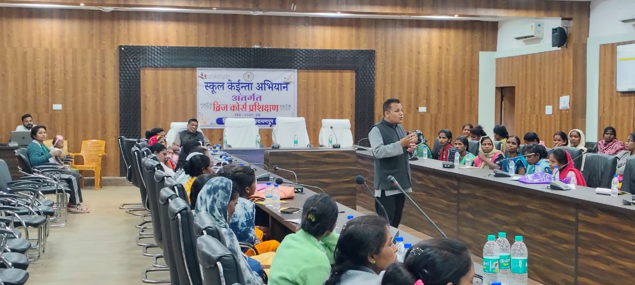अप्रवेशी और शाला-त्यागी बच्चों में आधारभूत साक्षरता, संख्याज्ञान व बुनियादी गणितीय कौशल विकसित करने के उद्देश्य से दो दिवसीय ब्रिज कोर्स प्रशिक्षण जिला पंचायत नारायणपुर के सभा कक्ष में आयोजित किया गया। प्रशिक्षण में बिहान (शिक्षा सखी) के अंतर्गत गठित स्व-सहायता समूहों की सदस्याओं ने भाग लिया।