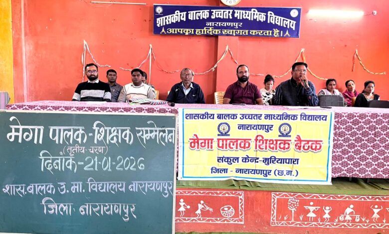 नारायणपुर। शासकीय बालक उच्चतर माध्यमिक विद्यालय में मंगलवार को तृतीय पालक-शिक्षक बैठक का आयोजन किया गया। बैठक का उद्देश्य विद्यार्थियों की शैक्षणिक प्रगति, नियमित उपस्थिति, अनुशासन एवं सर्वांगीण विकास को लेकर पालकों से सीधा संवाद स्थापित करना रहा।