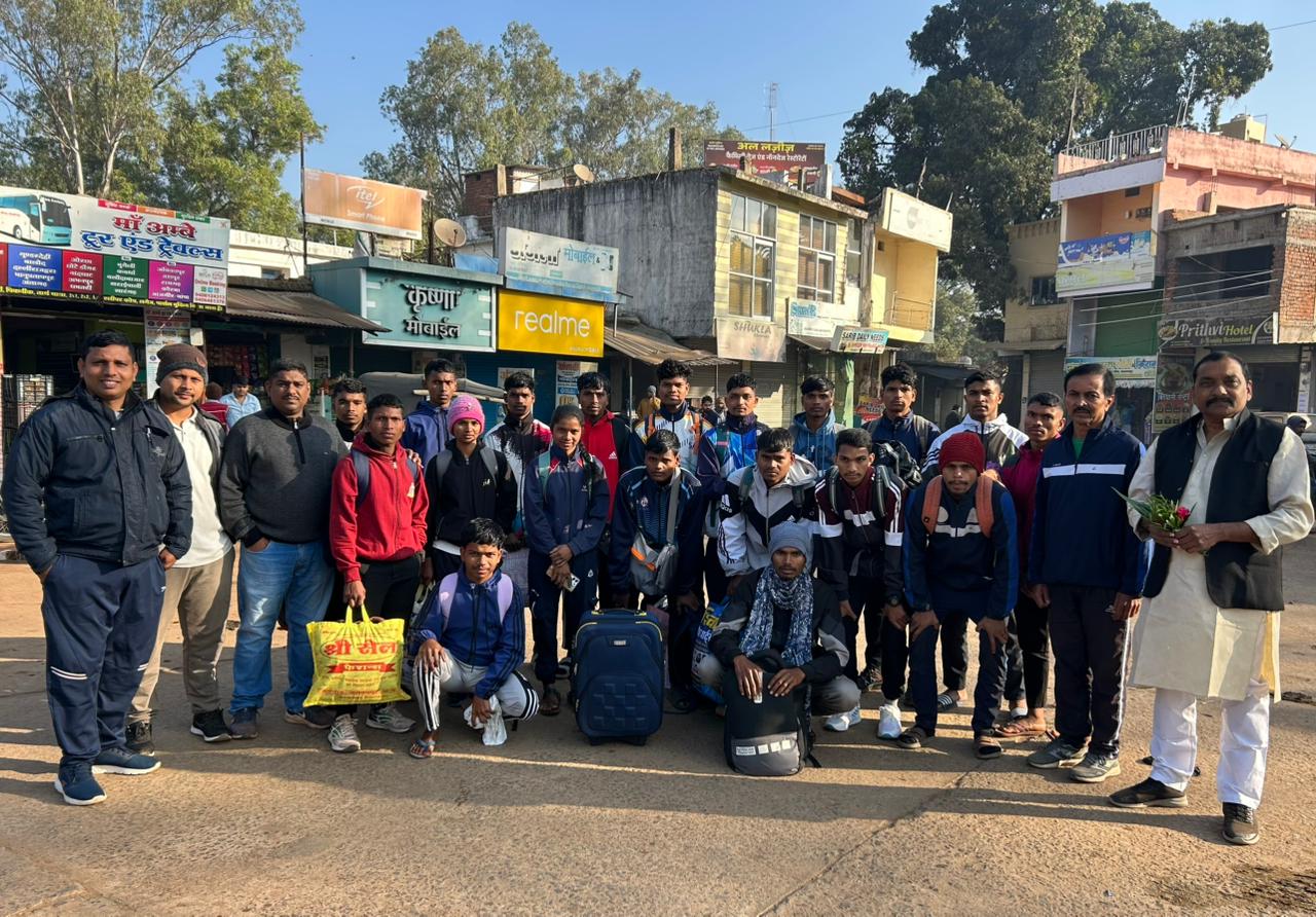 नारायणपुर। जिले के प्रतिभाशाली एथलीटों ने एक बार फिर नारायणपुर का नाम प्रदेश और देश स्तर पर रोशन करने की तैयारी कर ली है। डिस्ट्रिक्ट एथलेटिक्स एसोसिएशन, नारायणपुर के अध्यक्ष के मार्गदर्शन में चयनित 23 एथलीटों का दल आगामी खेलो इंडिया ट्राइबल गेम्स 2026 में भाग लेने के लिए रवाना हुआ। दल को खेलप्रेमियों, जनप्रतिनिधियों एवं संघ पदाधिकारियों ने शुभकामनाओं के साथ विदा किया।