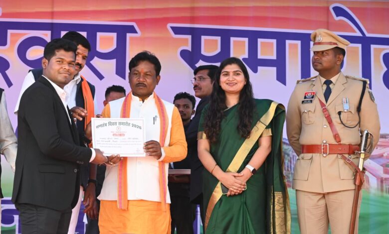 नारायणपुर, 27 जनवरी। जिले में 77वें गणतंत्र दिवस के अवसर पर आयोजित जिला स्तरीय समारोह में शासकीय सेवाओं में उत्कृष्ट योगदान देने वाले कर्मचारियों को सम्मानित किया गया। शासकीय बालक उच्चतर माध्यमिक विद्यालय के खेल मैदान में आयोजित इस गरिमामय कार्यक्रम में बस्तर लोकसभा सांसद महेश कश्यप मुख्य अतिथि के रूप में उपस्थित रहे। समारोह के दौरान जनसंपर्क विभाग के दो कर्मठ कर्मचारियों—सुरेश्वर निषाद और नासिक सहारे—को उनके उल्लेखनीय कार्यों के लिए प्रशस्ति पत्र प्रदान कर सम्मानित किया गया।