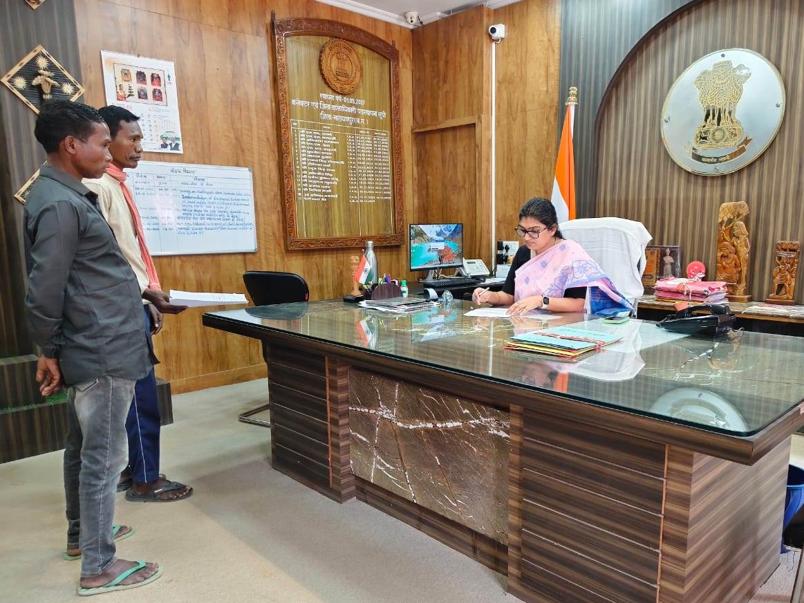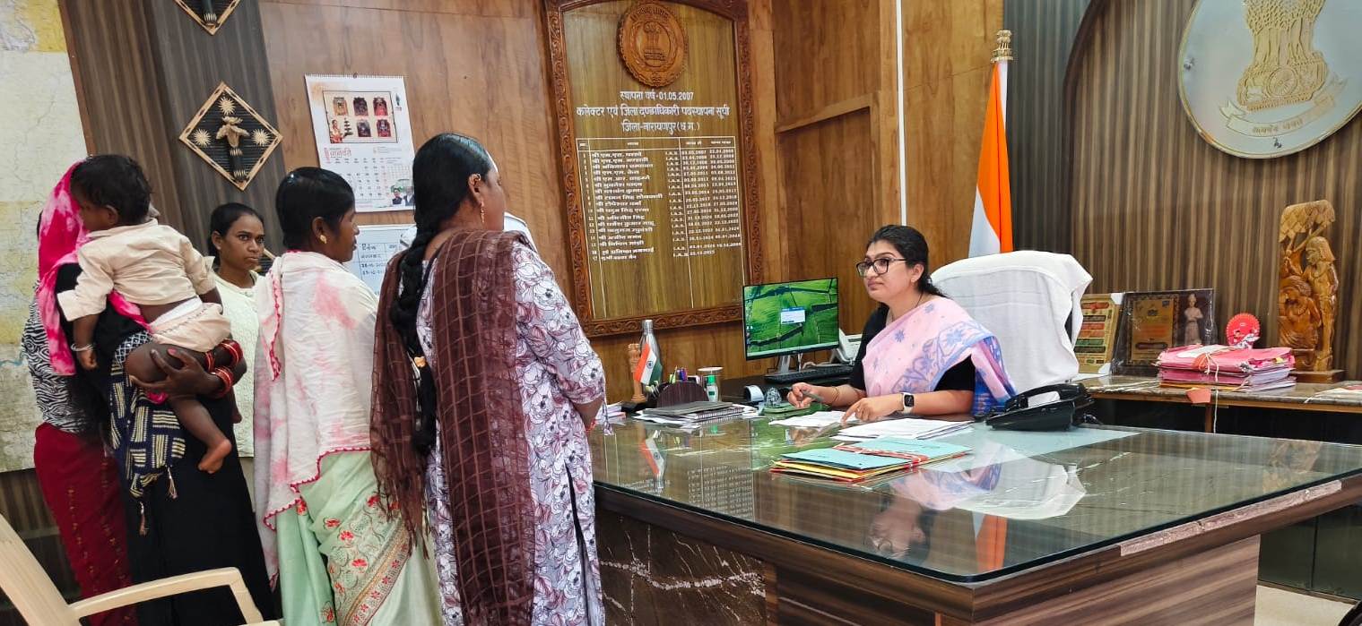 नारायणपुर कलेक्ट्रेट कार्यालय में सोमवार को आयोजित साप्ताहिक जनदर्शन कार्यक्रम में कलेक्टर नम्रता जैन ने जिले के विभिन्न ग्रामों से पहुंचे आम नागरिकों से सीधी मुलाकात कर उनकी समस्याएं, मांगें एवं शिकायतें गंभीरता से सुनीं। कलेक्टर ने जनदर्शन में प्राप्त आवेदनों पर संबंधित विभागीय अधिकारियों को त्वरित एवं संवेदनशील कार्रवाई के निर्देश देते हुए आवेदकों को शीघ्र निराकरण का भरोसा दिलाया।
