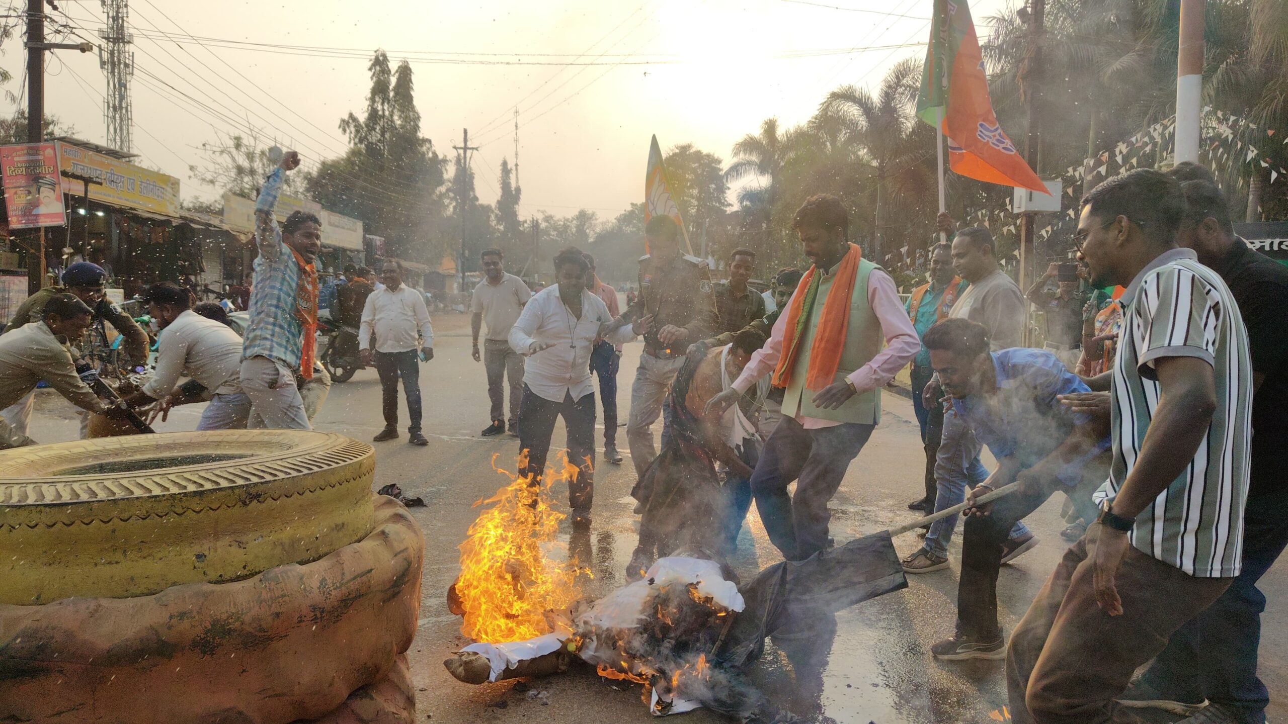 नारायणपुर। नई दिल्ली के भारत मंडपम में आयोजित एआई समिट के दौरान कांग्रेस कार्यकर्ताओं द्वारा किए गए कथित अर्धनग्न प्रदर्शन के विरोध में आज भाजपा ने तीखा प्रतिरोध दर्ज कराया। नगर के प्रमुख चौराहे जयस्तंभ चौक पर भाजपा किसान मोर्चा, महिला मोर्चा और युवा मोर्चा के पदाधिकारी व कार्यकर्ता एकत्र हुए और कांग्रेस का पुतला दहन कर विरोध जताया।