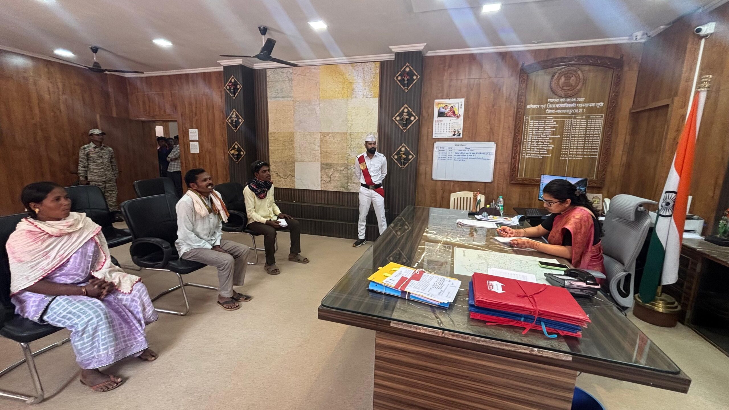 कैलाश सोनी- नारायणपुर। जिले के गांवों से अपनी समस्याएं लेकर पहुंचे लोगों की उम्मीदें सोमवार को कलेक्ट्रेट में आयोजित जनदर्शन में फिर जगीं। कलेक्टर नम्रता जैन ने आमजनों की शिकायतें व मांगें सीधे सुनीं और सड़क, पेयजल, बिजली, शिक्षा, स्वास्थ्य तथा राजस्व से जुड़े मामलों पर संबंधित विभागों को मौके पर ही समय-सीमा में कार्रवाई करने के निर्देश दिए। कलेक्टर ने स्पष्ट कहा कि जनदर्शन में आए प्रकरणों का समाधान धरातल पर दिखना चाहिए, सिर्फ फाइलों में नहीं।