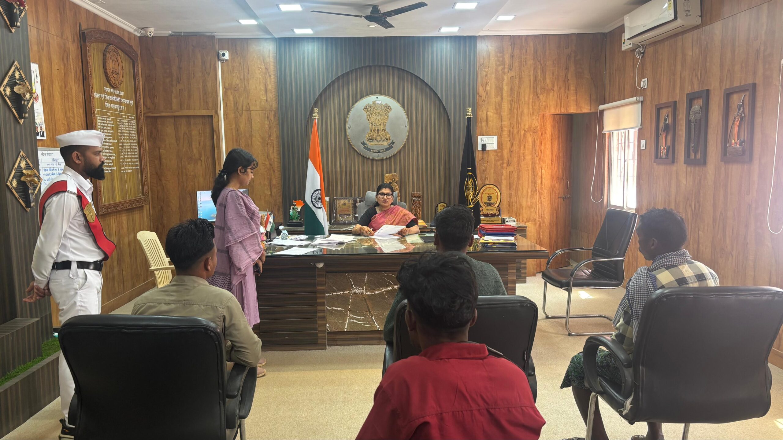 कैलाश सोनी- नारायणपुर। जिले के गांवों से अपनी समस्याएं लेकर पहुंचे लोगों की उम्मीदें सोमवार को कलेक्ट्रेट में आयोजित जनदर्शन में फिर जगीं। कलेक्टर नम्रता जैन ने आमजनों की शिकायतें व मांगें सीधे सुनीं और सड़क, पेयजल, बिजली, शिक्षा, स्वास्थ्य तथा राजस्व से जुड़े मामलों पर संबंधित विभागों को मौके पर ही समय-सीमा में कार्रवाई करने के निर्देश दिए। कलेक्टर ने स्पष्ट कहा कि जनदर्शन में आए प्रकरणों का समाधान धरातल पर दिखना चाहिए, सिर्फ फाइलों में नहीं।