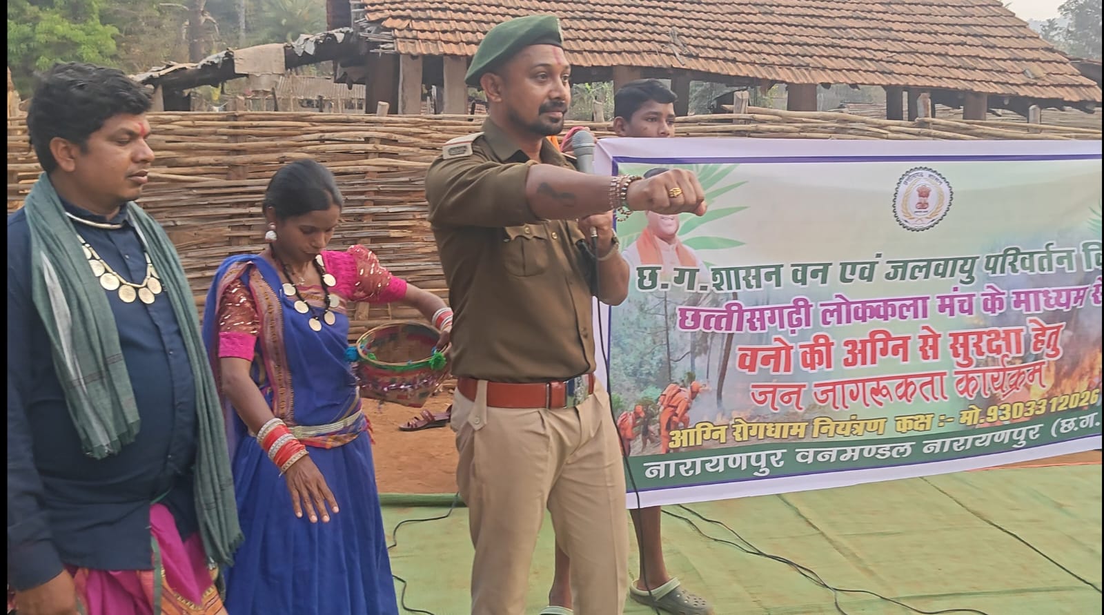नारायणपुर वन मंडल के अंतर्गत अबूझमाड़ क्षेत्र के पश्चिम सोनपुर वन परिक्षेत्र में ग्राम पंचायत कोंगे, बैरेन टोला और पांगुड़ में लोककला मंच के माध्यम से विशेष जनजागरूकता कार्यक्रम आयोजित किया गया। यह कार्यक्रम वन मंडलाधिकारी वेंकटेश एम. जी. के मार्गदर्शन में आयोजित हुआ, जिसमें ग्रामीणों को वनों में लगने वाली आग के दुष्परिणामों के बारे में विस्तार से बताया गया।
