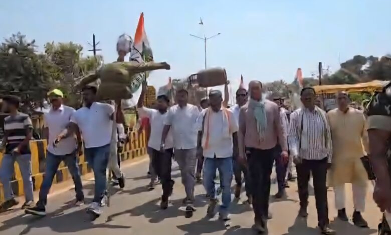 गैस सिलेंडर के दाम बढ़ने पर कांग्रेस का विरोध, जय स्तंभ चौक पर प्रधानमंत्री का पुतला दहन