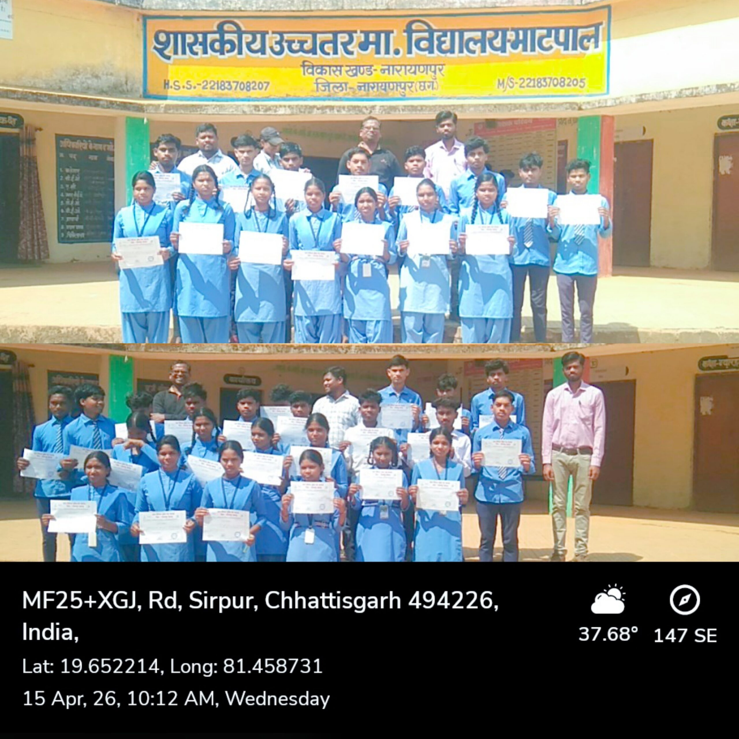 जानकारी के अनुसार, राज्य माध्यमिक शिक्षा अभियान रायपुर (छत्तीसगढ़) के निर्देशानुसार विद्यालय के विद्यार्थियों ने अटल डिजिटल लोक सेवा केन्द्र भाटपाल में टेलीकॉम ट्रेड के अंतर्गत कुल 800 घंटे का प्रशिक्षण प्राप्त किया। यह प्रशिक्षण विगत सत्र 2025-26 के दौरान संपन्न हुआ, जिसमें विद्यार्थियों को कंप्यूटर तकनीक और टेलीकॉम क्षेत्र की बारीकियों से अवगत कराया गया।