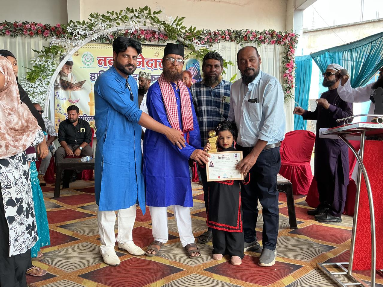 कार्यक्रम के दौरान एक और गौरवपूर्ण क्षण तब आया जब नारायणपुर के मोहम्मद अनस इब्न अब्दुल रहीम, जिन्होंने मरकज़ी जमीअतुर रज़ा बरेली शरीफ़ में एंट्रेंस एग्जाम में सफलता प्राप्त की, उन्हें मंच से शॉल एवं मोमेंटो देकर सम्मानित किया गया। उनकी इस उपलब्धि पर उपस्थित सभी लोगों ने खुशी जाहिर की और उनके उज्ज्वल भविष्य की दुआ की।