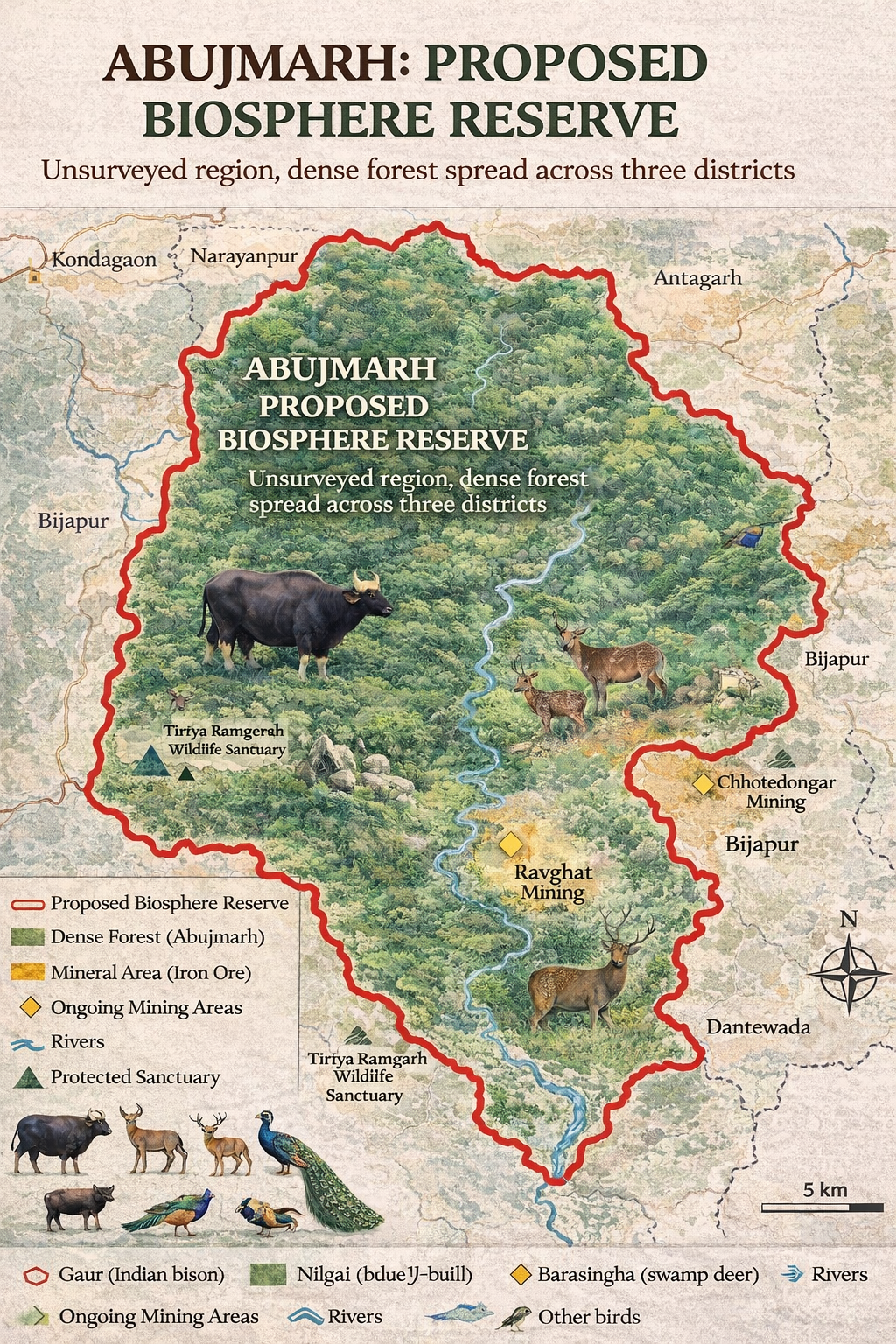 उल्लेखनीय है कि साल 2007 में अबूझमाड़ को बायोस्फीयर रिजर्व बनाने का प्रस्ताव दिया गया था, लेकिन यह अब तक लागू नहीं हो पाया है। वर्तमान में यह क्षेत्र प्रस्तावित श्रेणी में ही है। विशेषज्ञ मानते हैं कि मौजूदा हालात को देखते हुए अब इसे लागू करना बेहद जरूरी हो गया है।