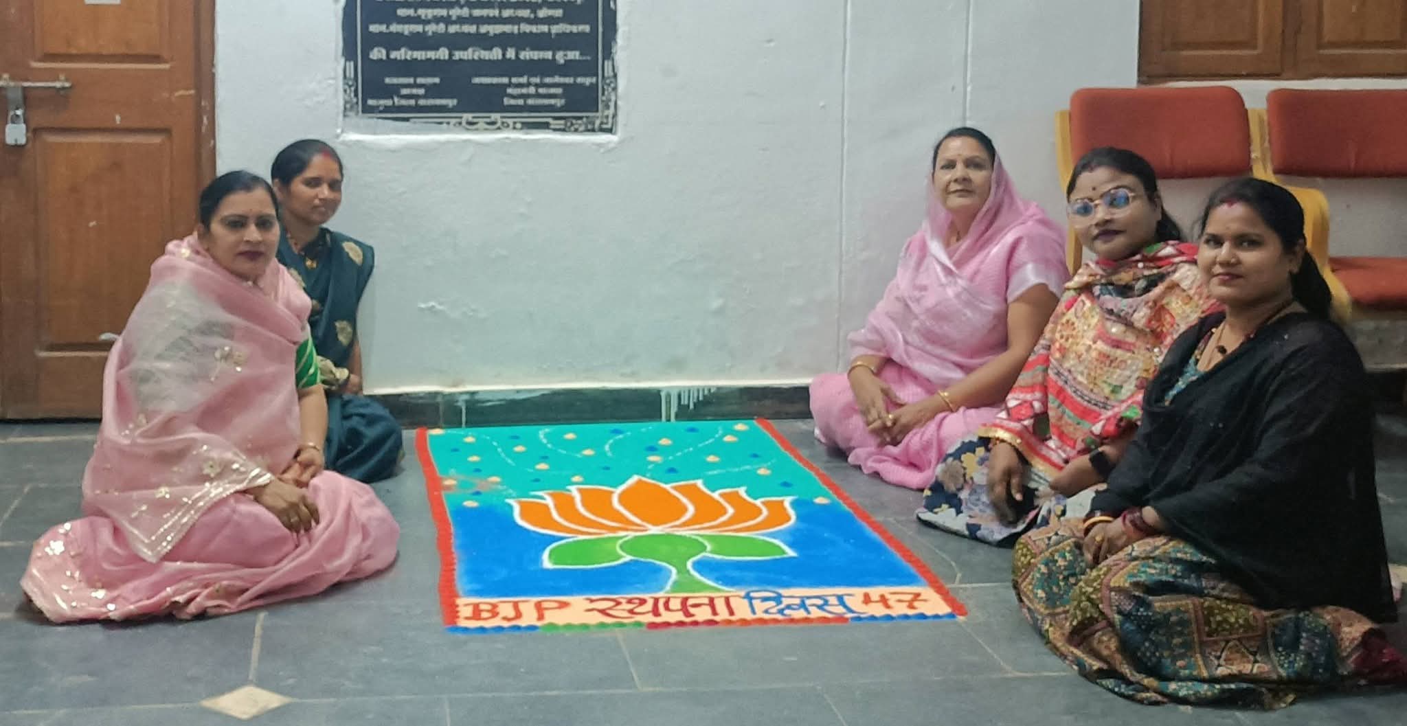 स्थापना दिवस की पूर्व संध्या पर सजा भाजपा कार्यालय, महिलाओं के जज्बे ने रचा रंगोली में समर्पण का रंग
